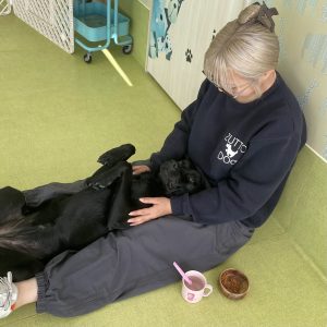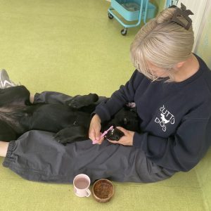 お腹をみせる姿勢を過度に嫌がる子には無理をさせず、おすわりやマットでの伏せでもできるのでやりやすい姿勢を見つけてみましょう🎵