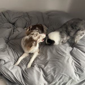 宮内は、足元で寝るポノちゃん・ベット横のクッションで寝るピリちゃんのことを見ながら眠りにつくのが幸せです💖