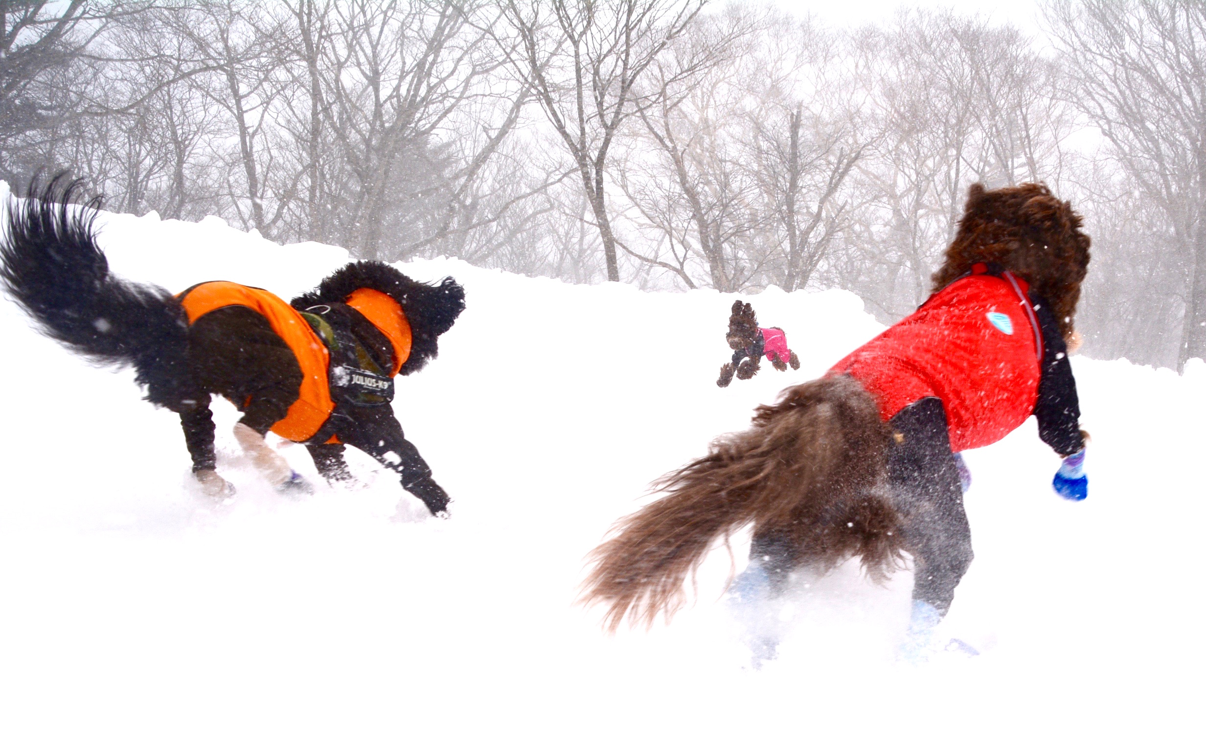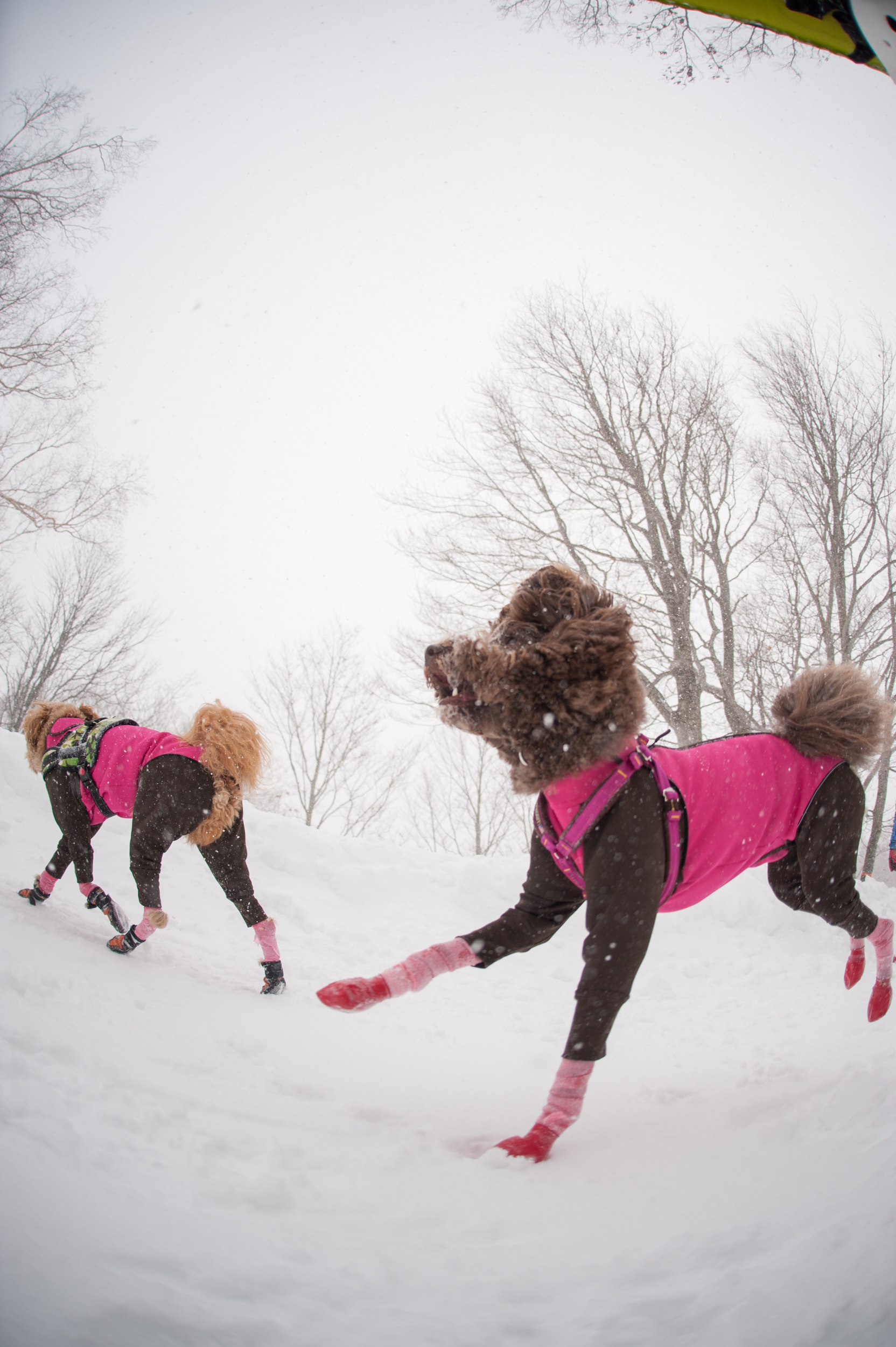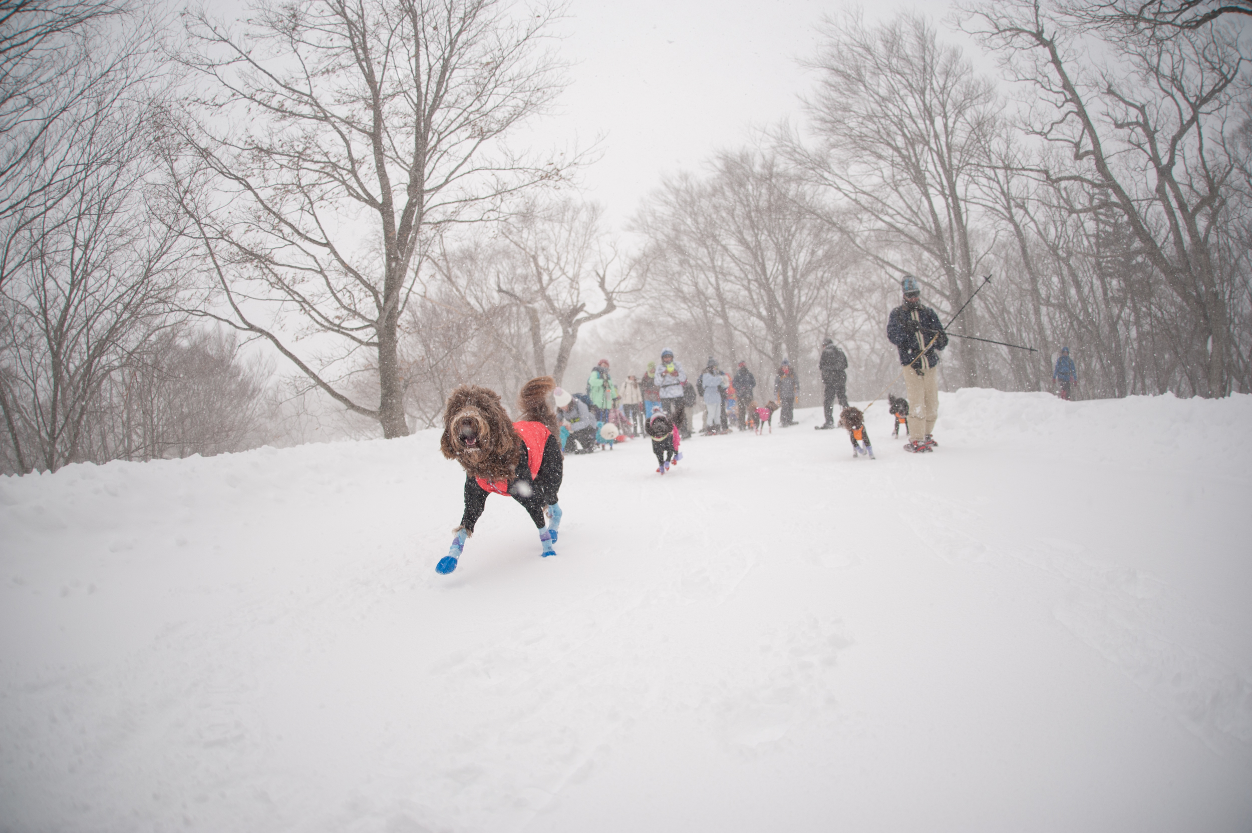犬達も小っちゃいトイプードルから、オーストラリアンラブラドゥードル、サルーキ、ピットなどなど様々な大きさと犬種が雪の上をストレスフリーで駆けずり回りました。
